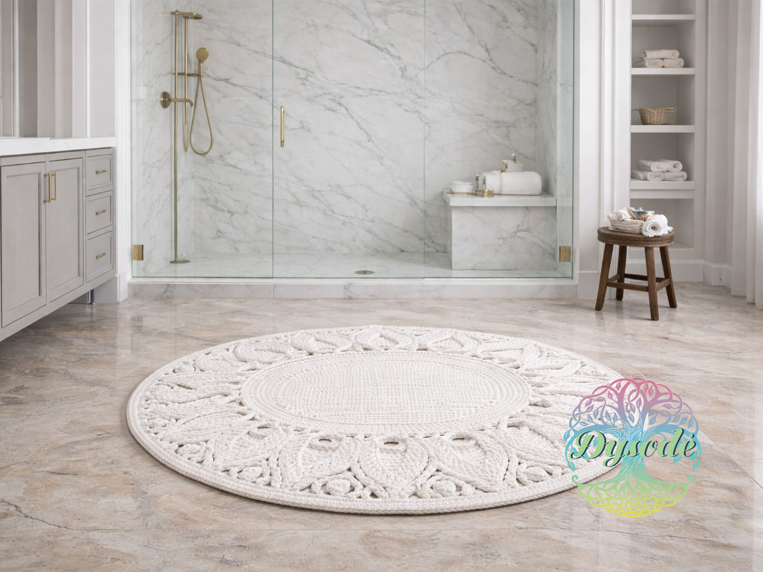 Baltos spalvos vonios kambario kilimėlis
