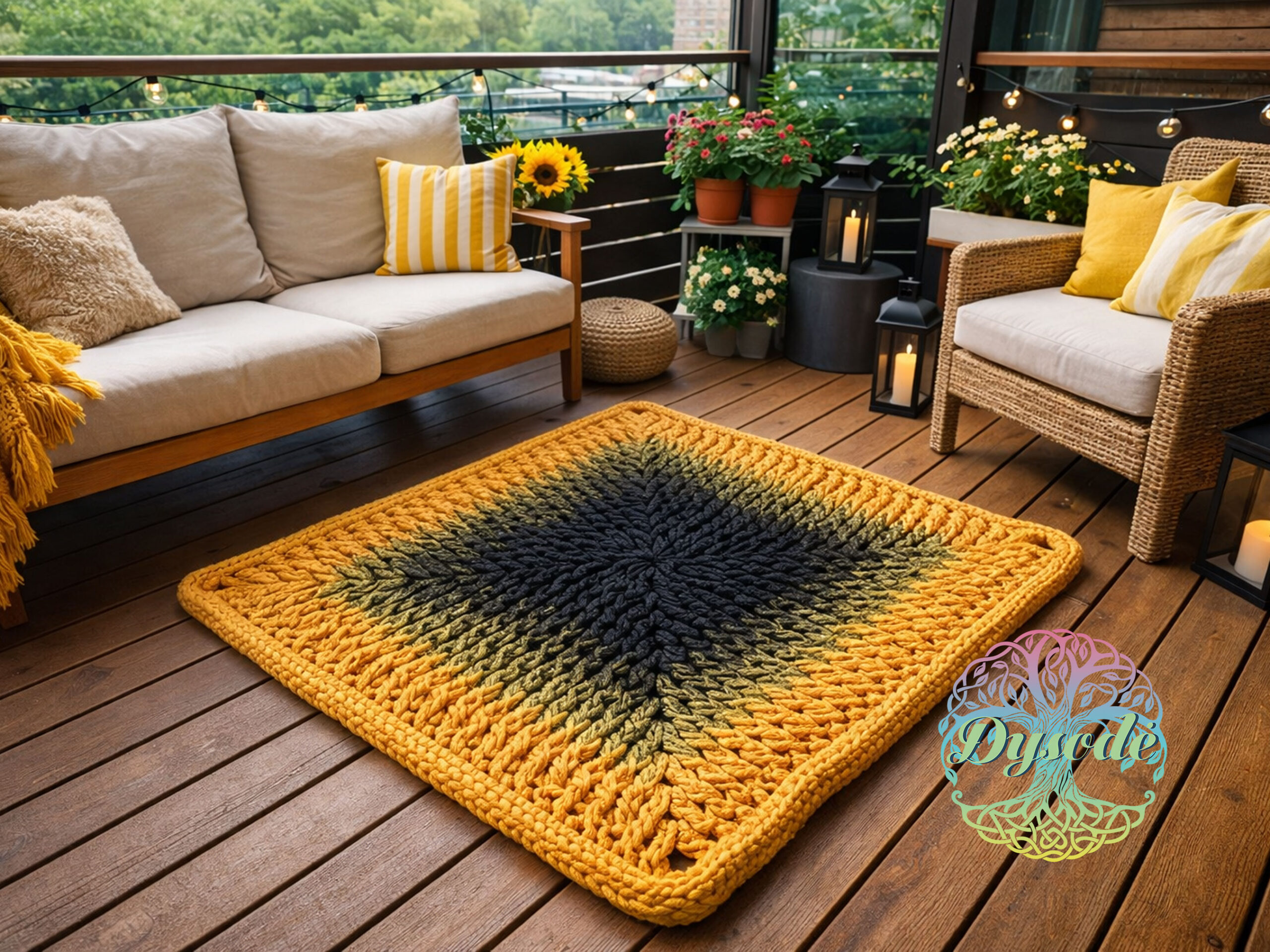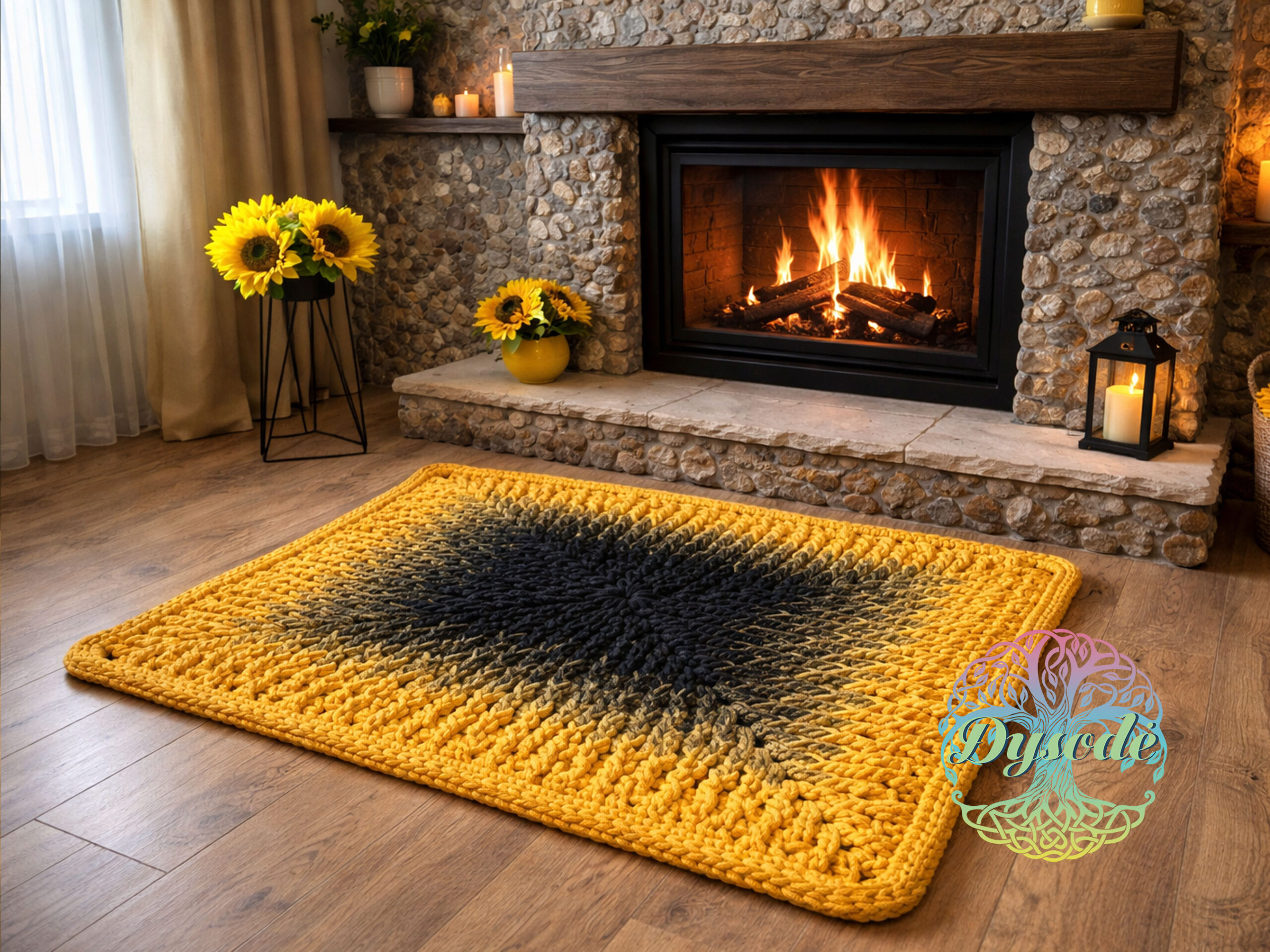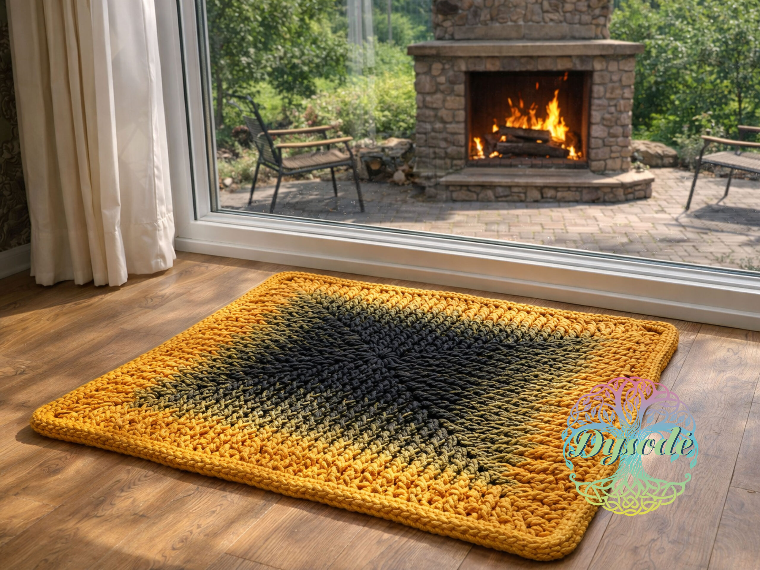 Juodos – geltonos spalvos ombre kilimas „Močiutės kvadratas“