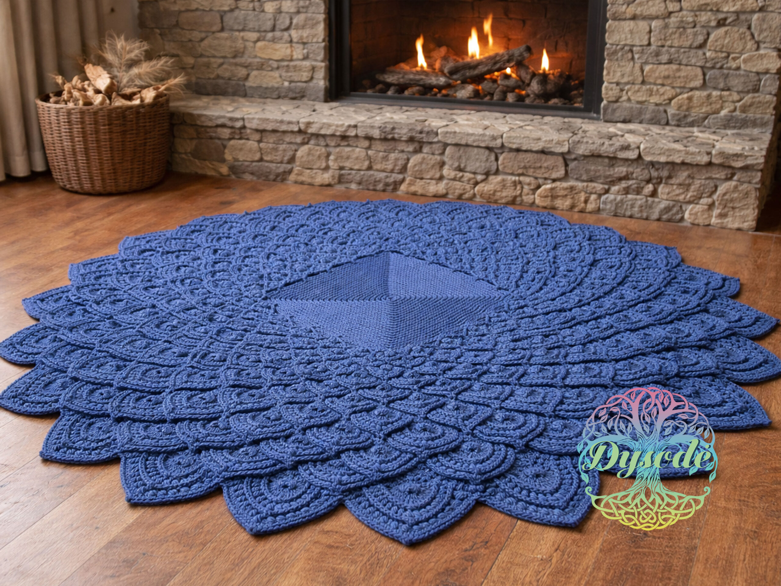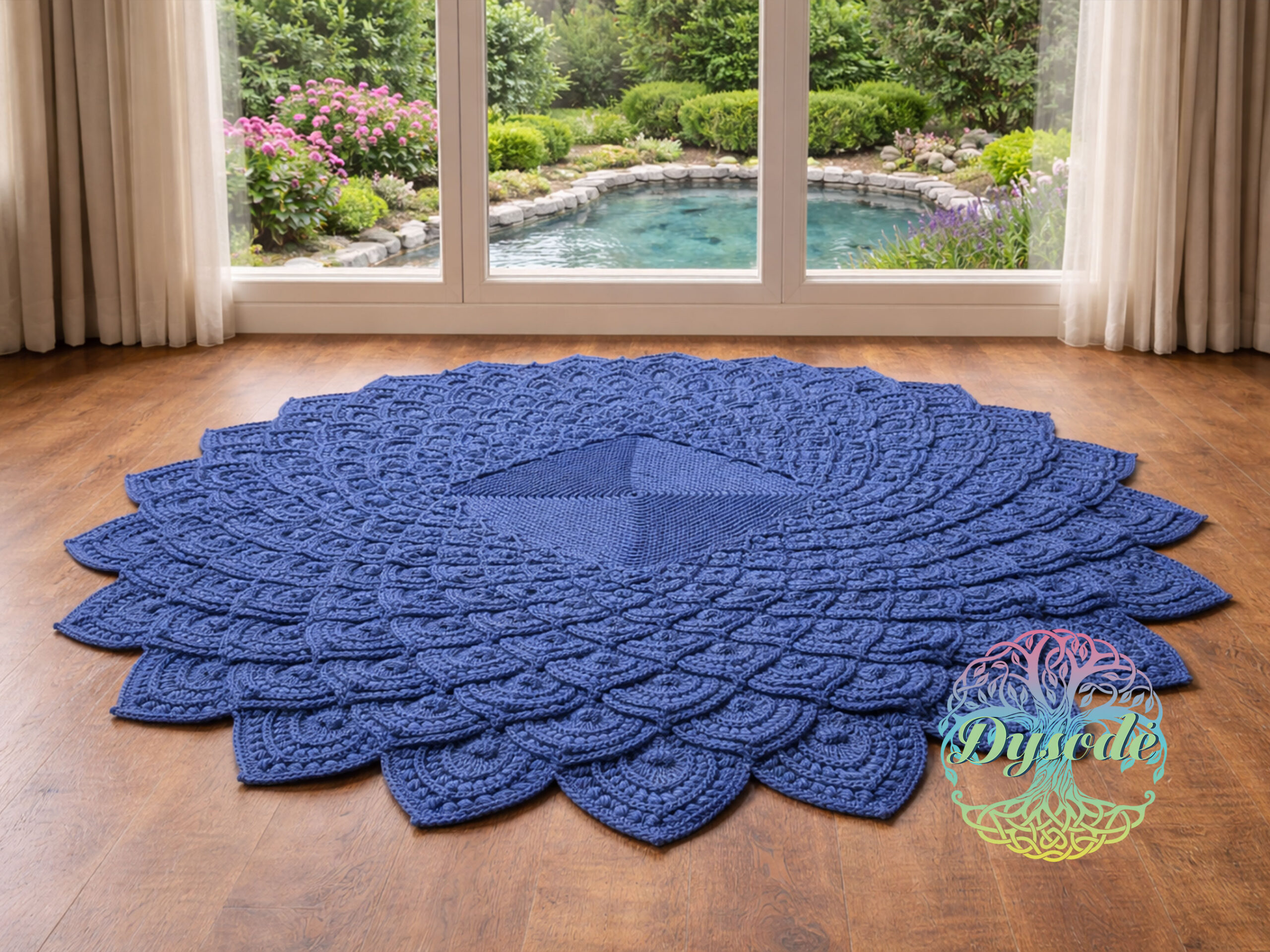 Karališkos mėlynos spalvos kilimas tuščiaviduris „Lotosas“ kvadratiniu viduriu