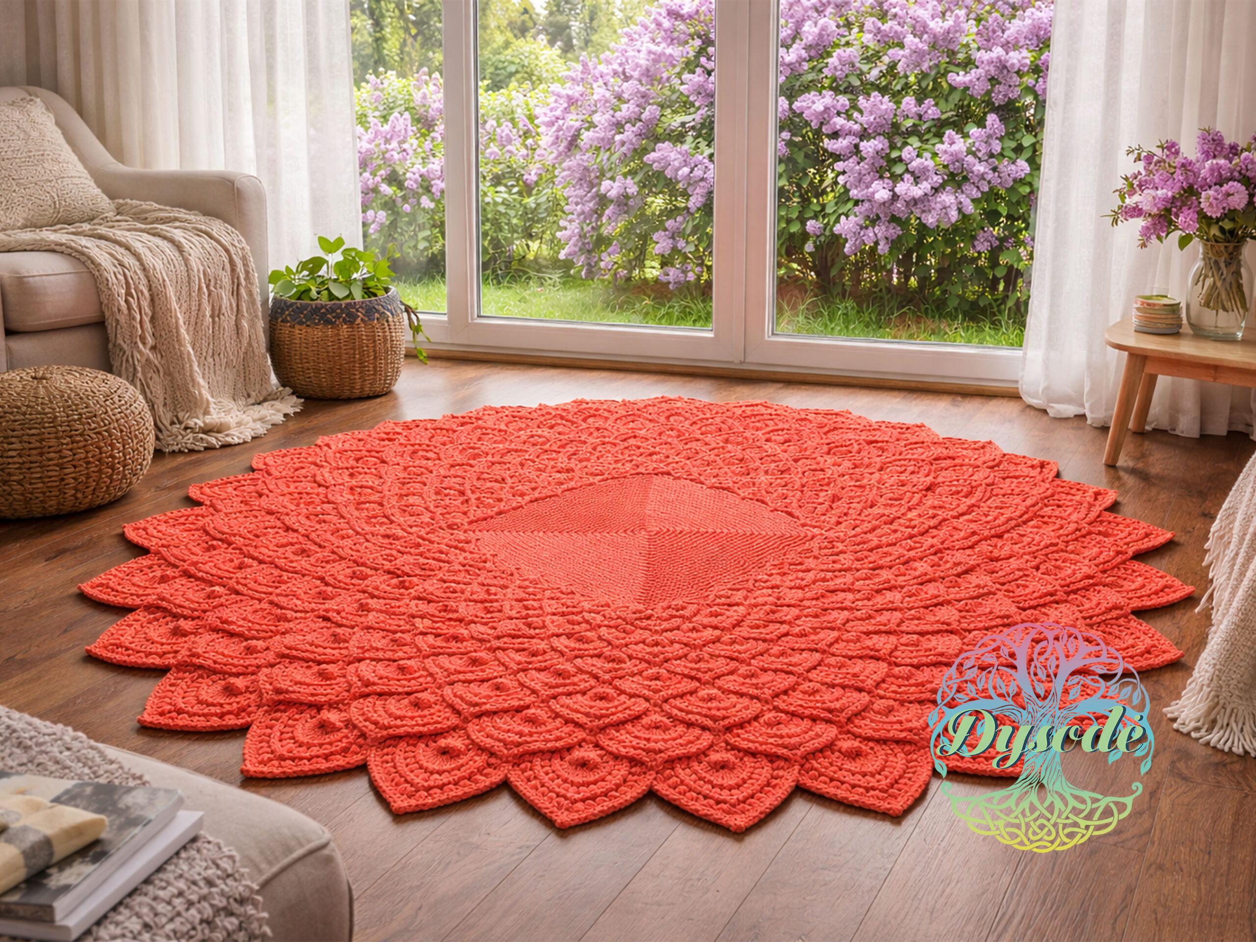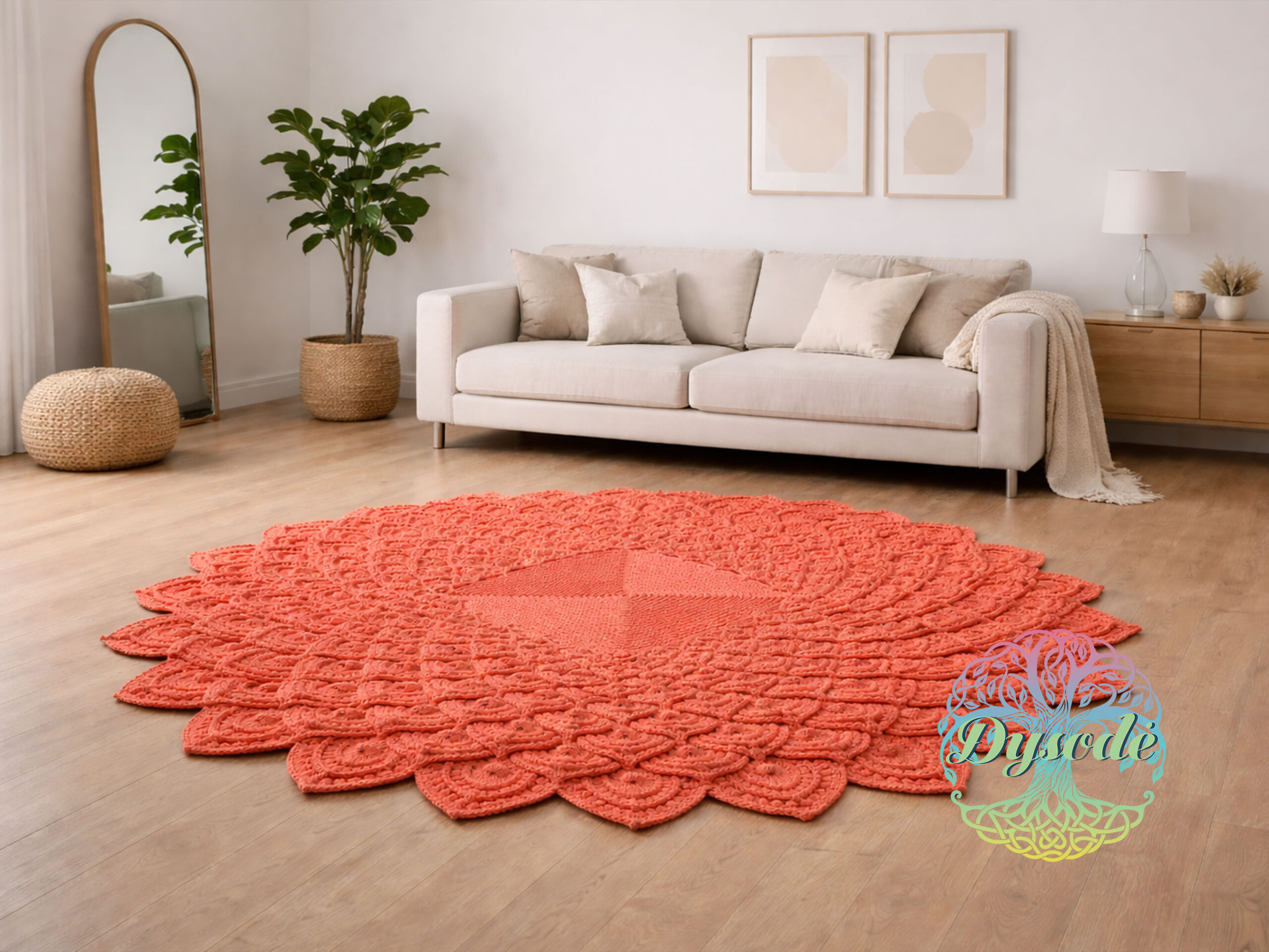 Koralo spalvos kilimas tuščiaviduris „Lotosas“ kvadratiniu viduriu