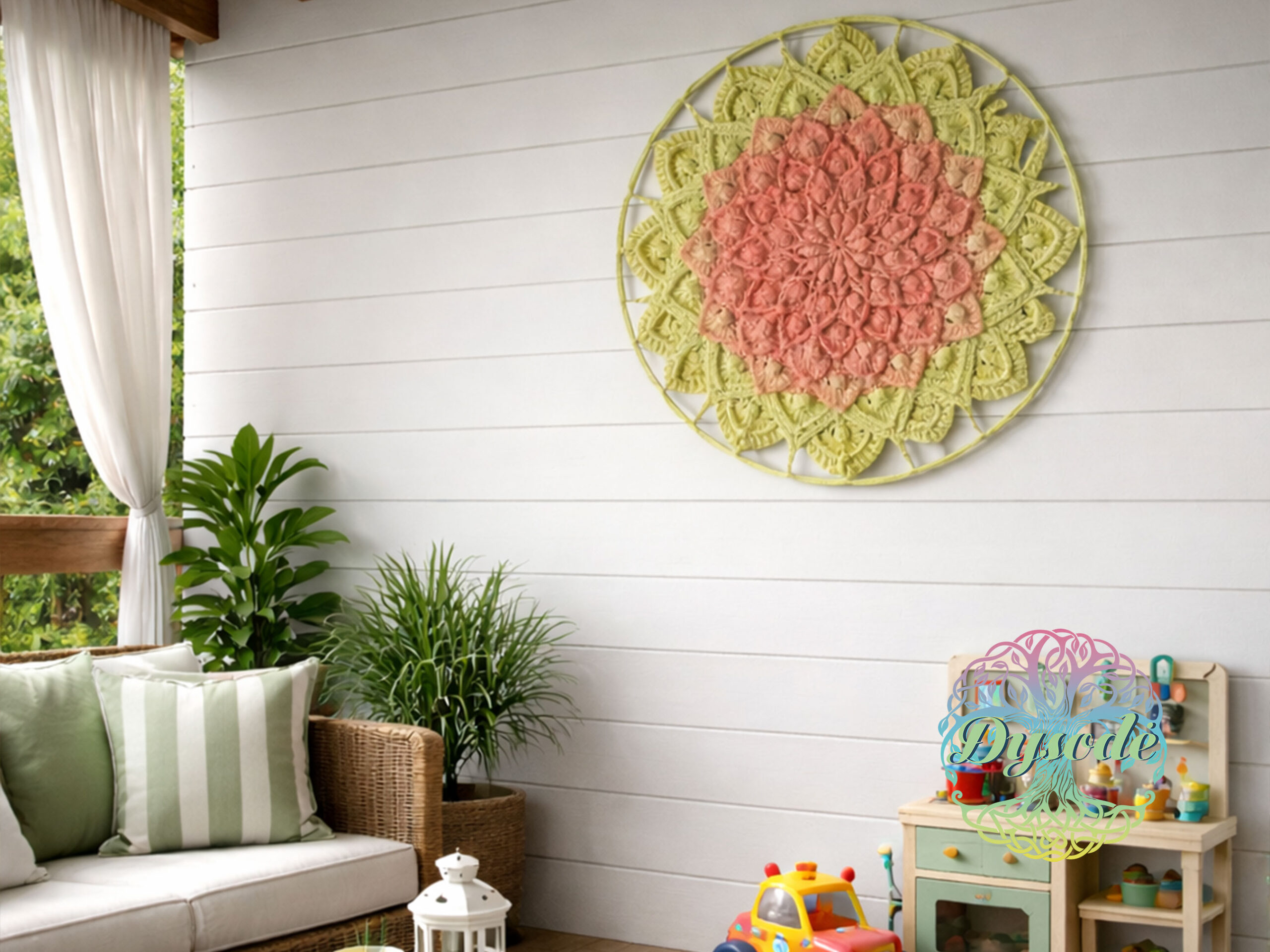 Kokybiška rankų darbo mandala iš virvės (100% poliesteris). Virvutė itin kokybiška, todėl spalva tikrai neišbluks. Lietuvoje pristatome NEMOKAMAI. Jei turite klausimų maloniai prašome kreiptis skiltyje – “Kontaktai”.
