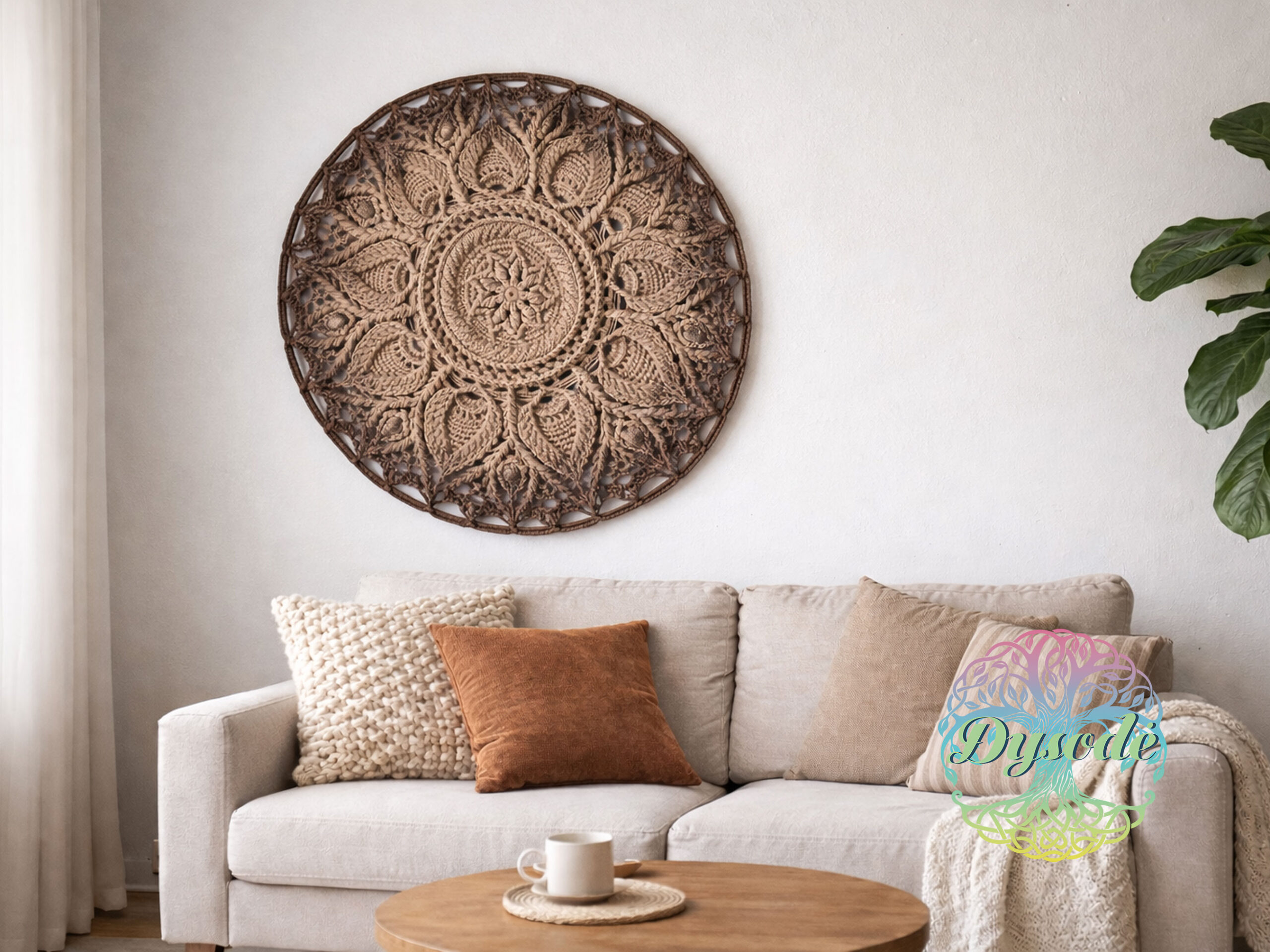Kokybiška rankų darbo mandala iš virvės (100% poliesteris). Virvutė itin kokybiška, todėl spalva tikrai neišbluks. Lietuvoje pristatome NEMOKAMAI. Jei turite klausimų maloniai prašome kreiptis skiltyje – “Kontaktai”.