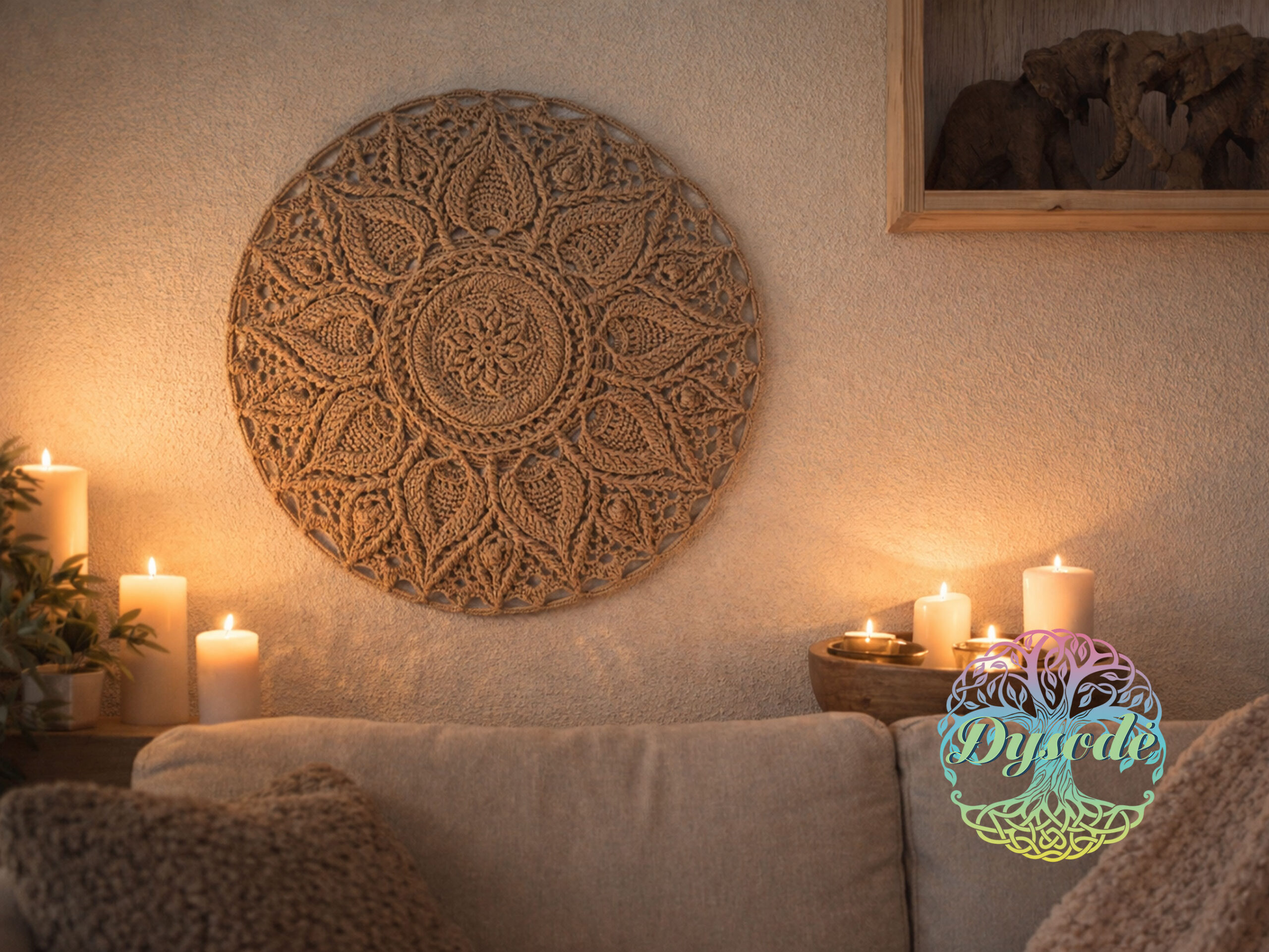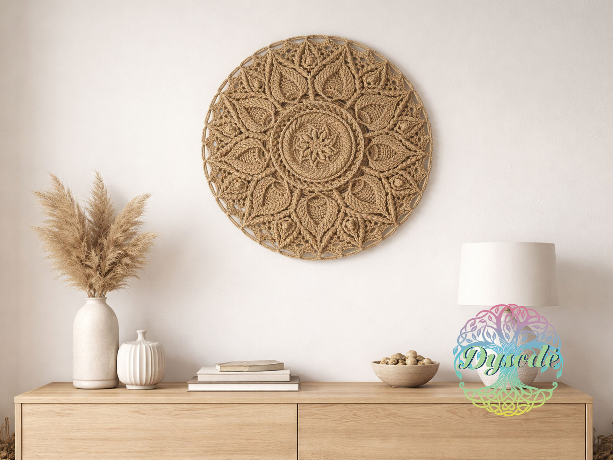 Kokybiška rankų darbo mandala iš virvės (100% poliesteris). Virvutė itin kokybiška, todėl spalva tikrai neišbluks. Lietuvoje pristatome NEMOKAMAI. Jei turite klausimų maloniai prašome kreiptis skiltyje – “Kontaktai”.