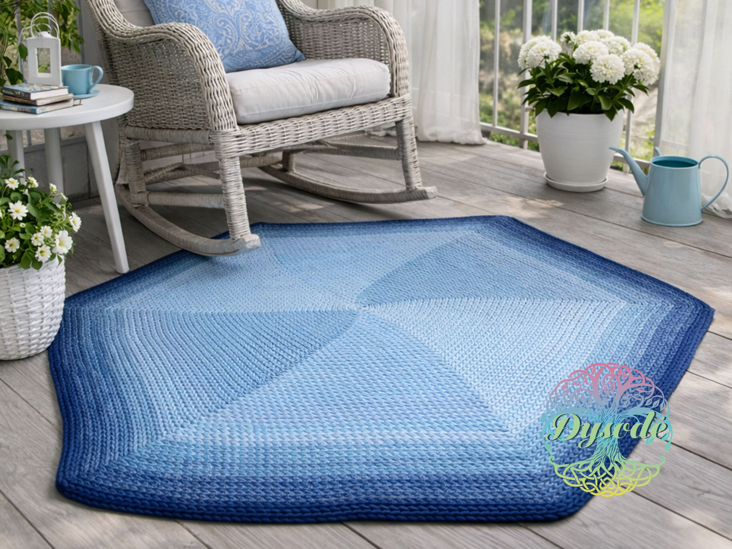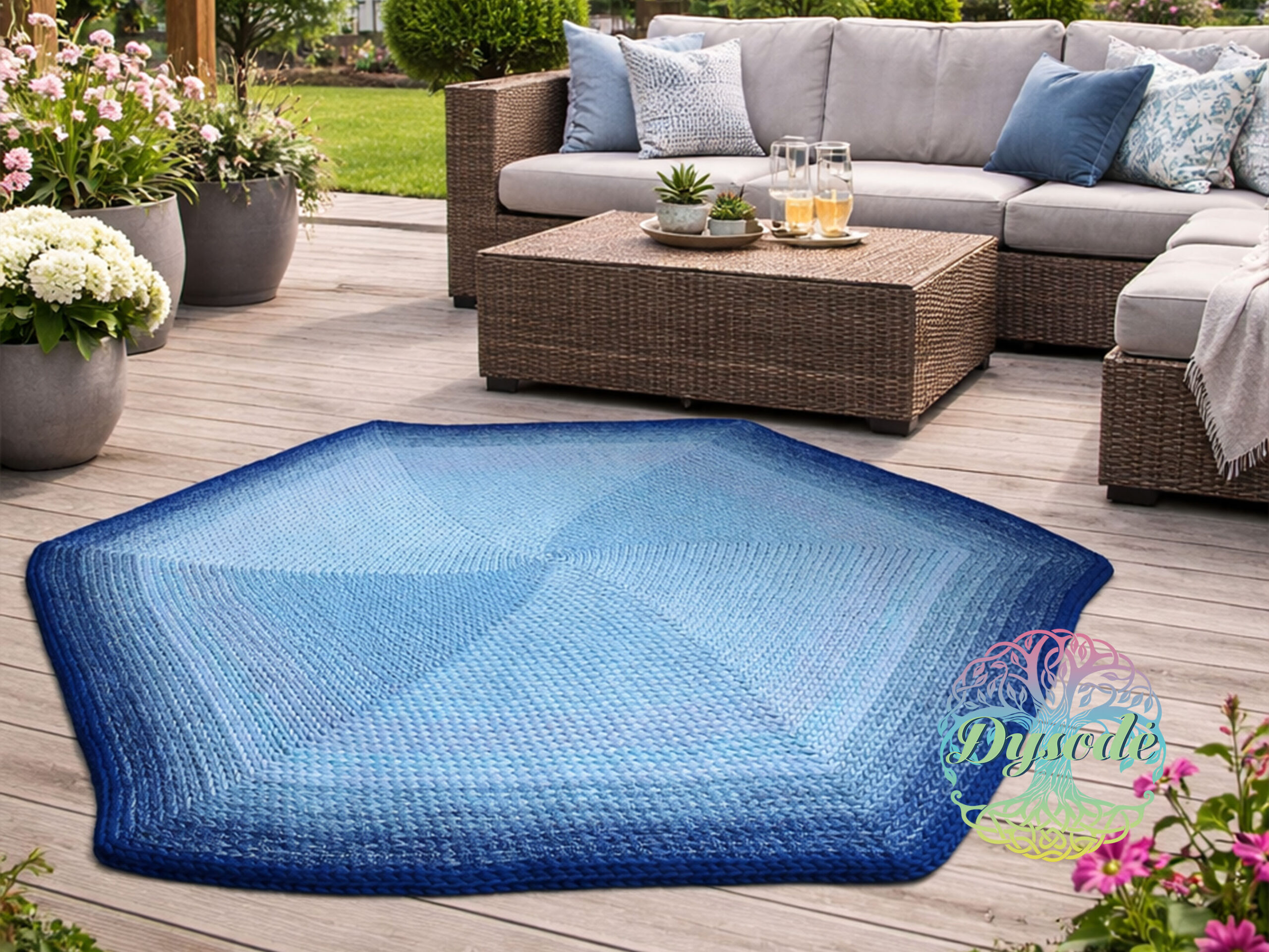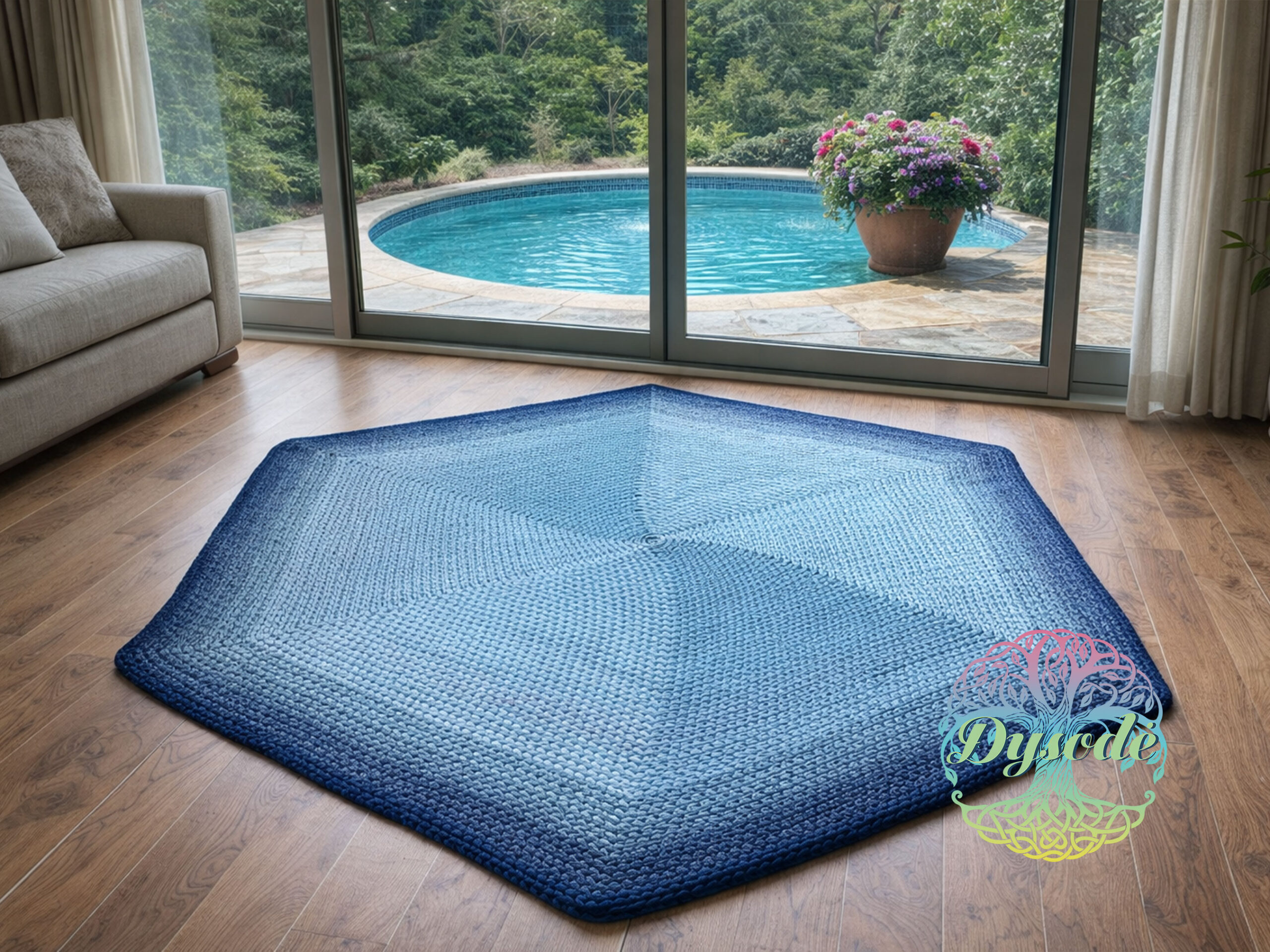 Mėlynos spalvos ombre kilimas „Šešiakampis“