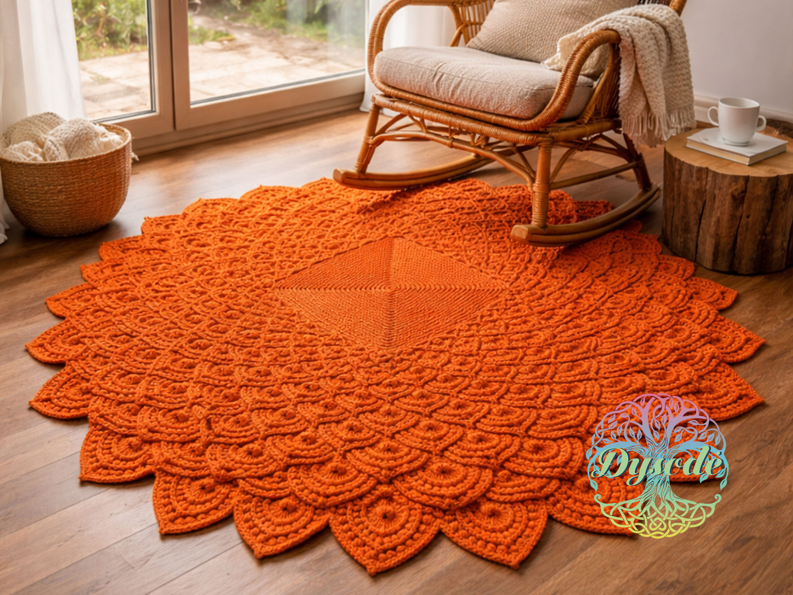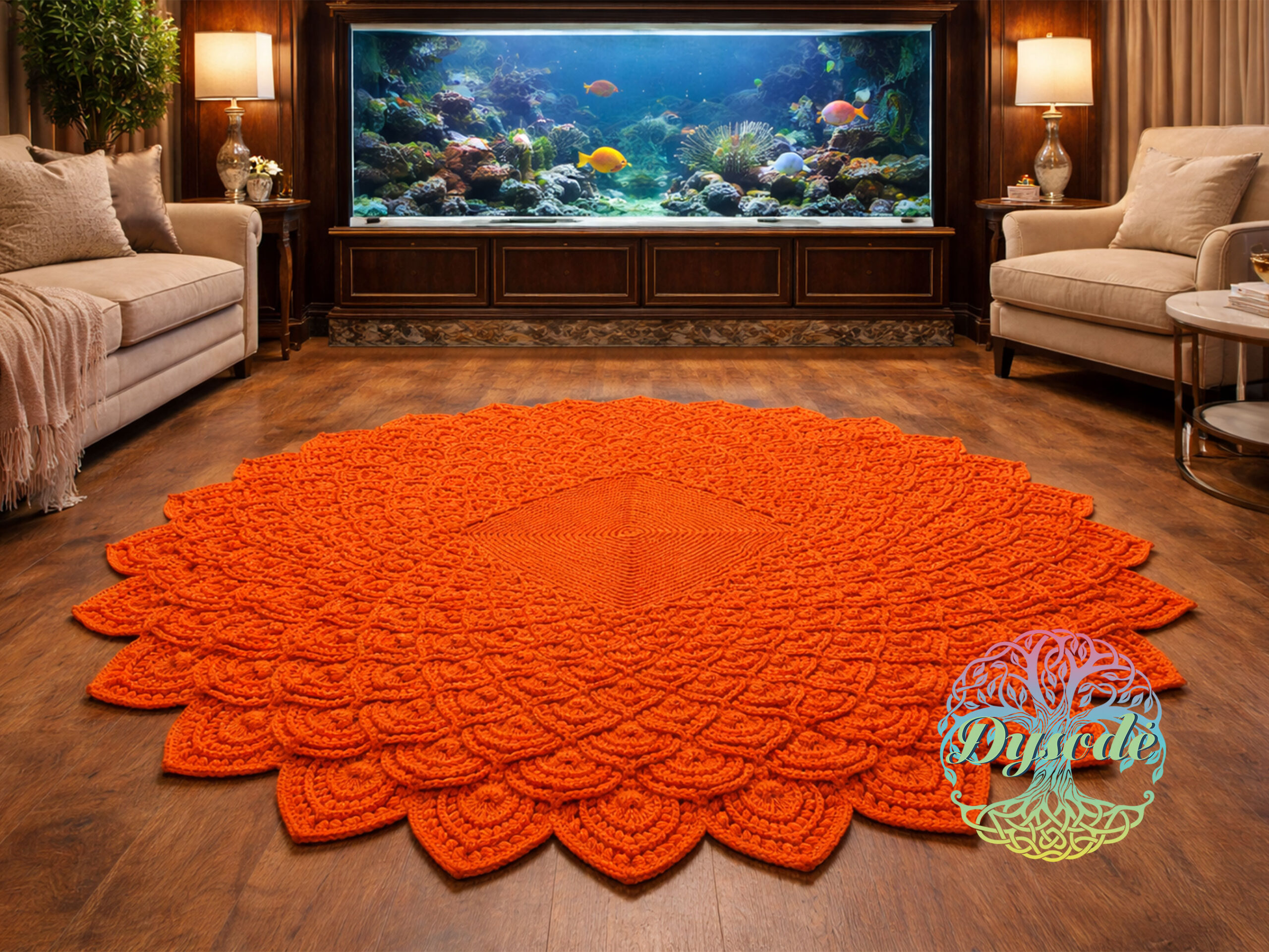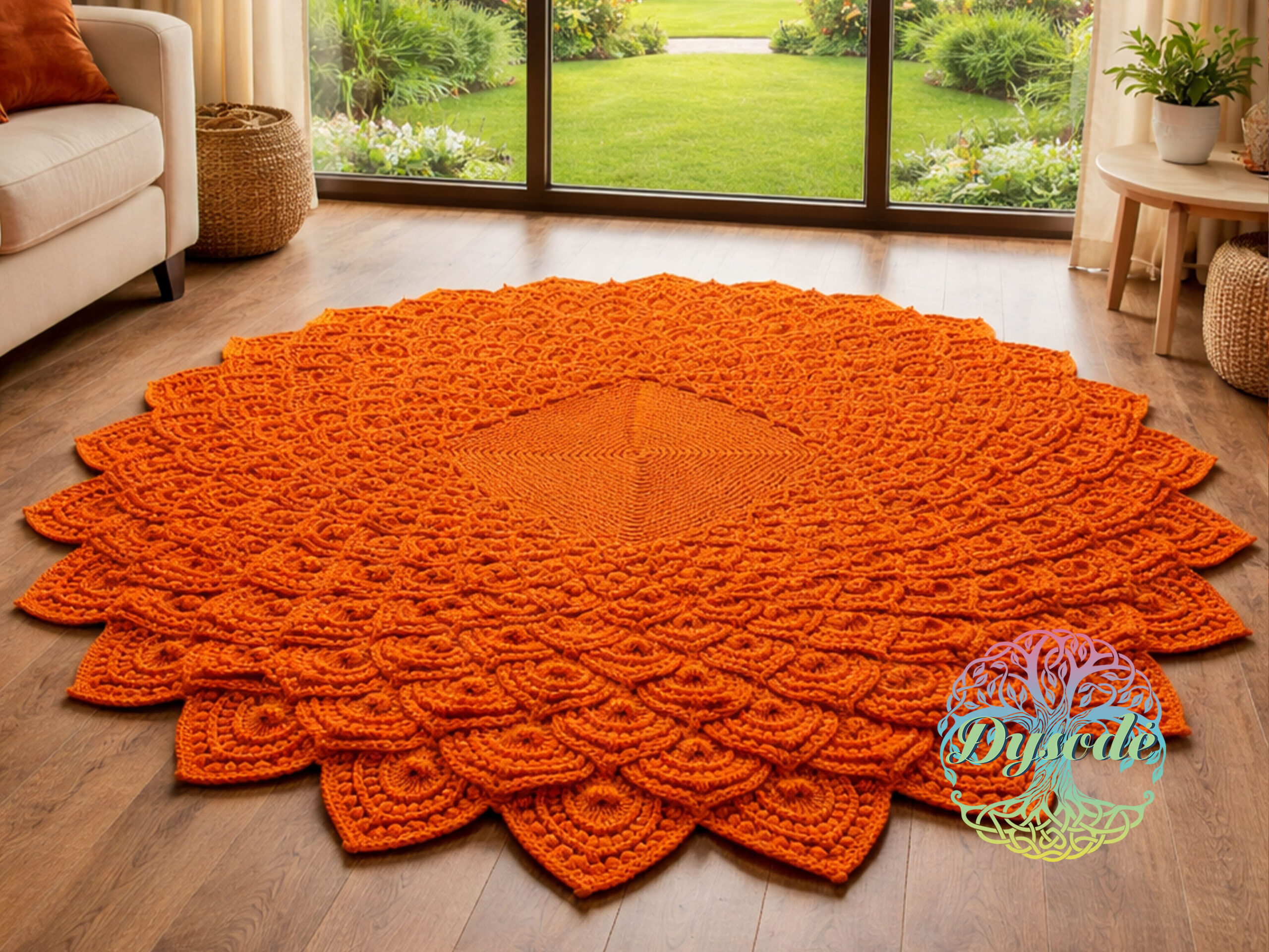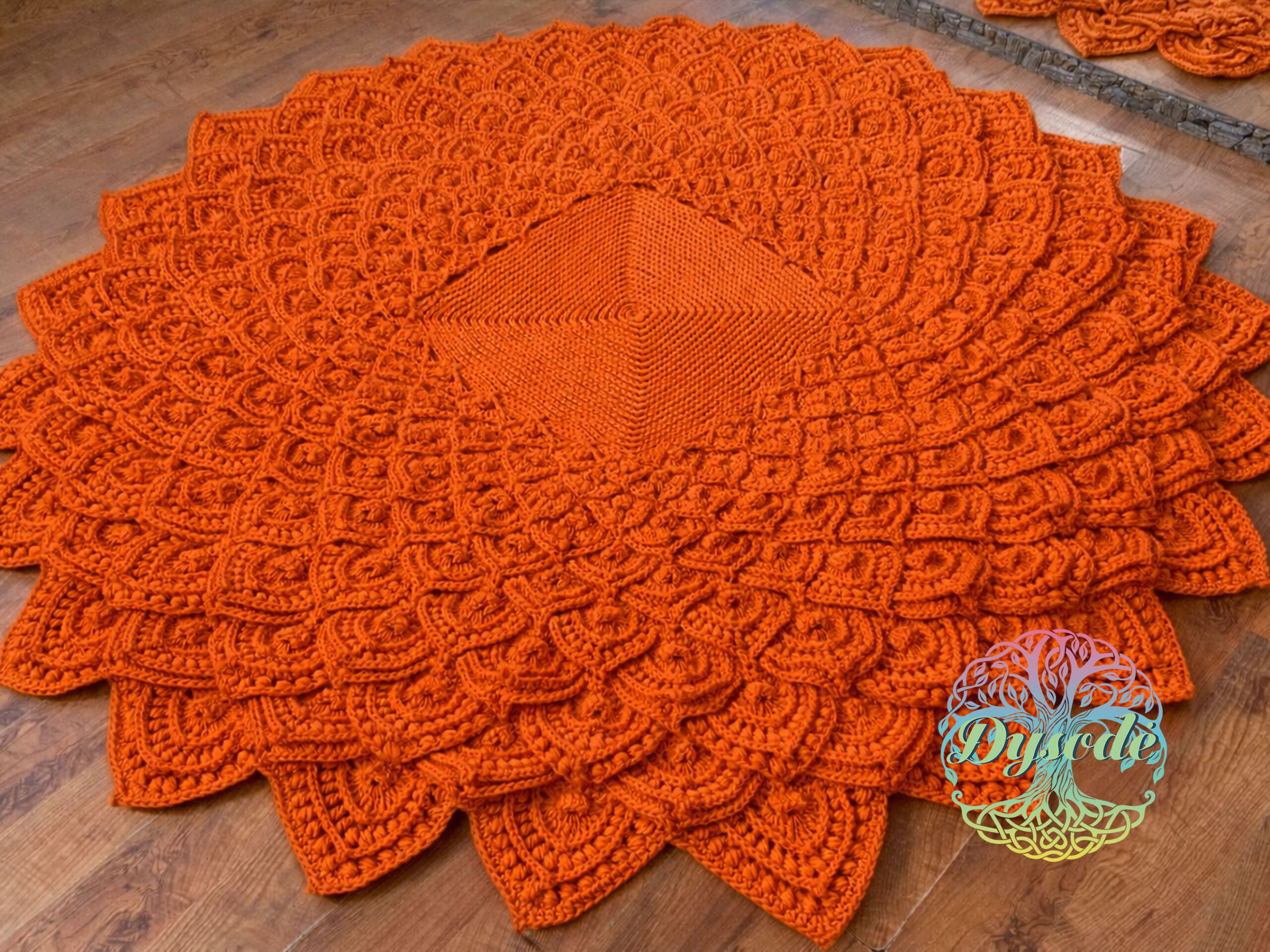 Moliūgo spalvos kilimas tuščiaviduris „Lotosas“ kvadratiniu viduriu