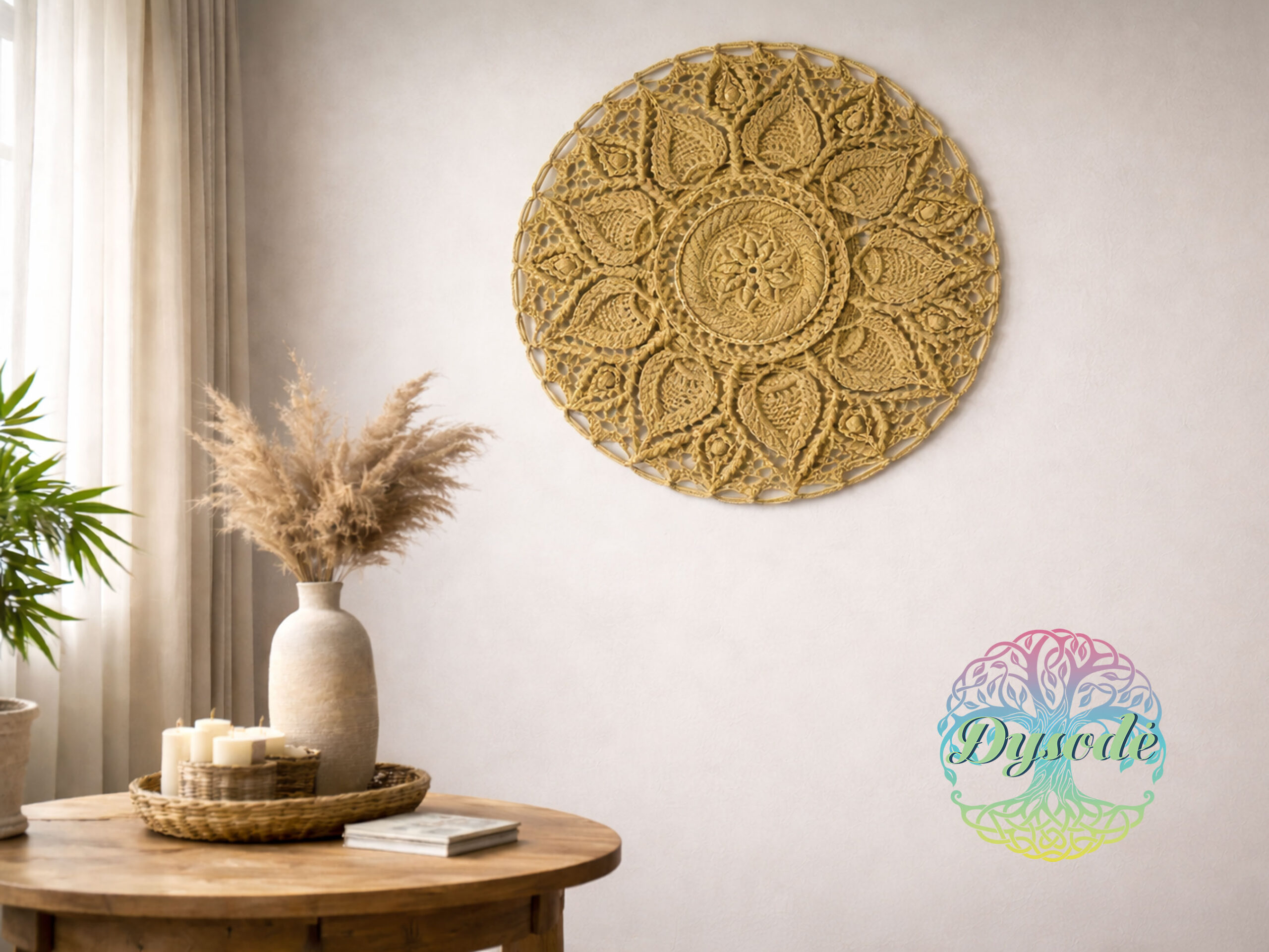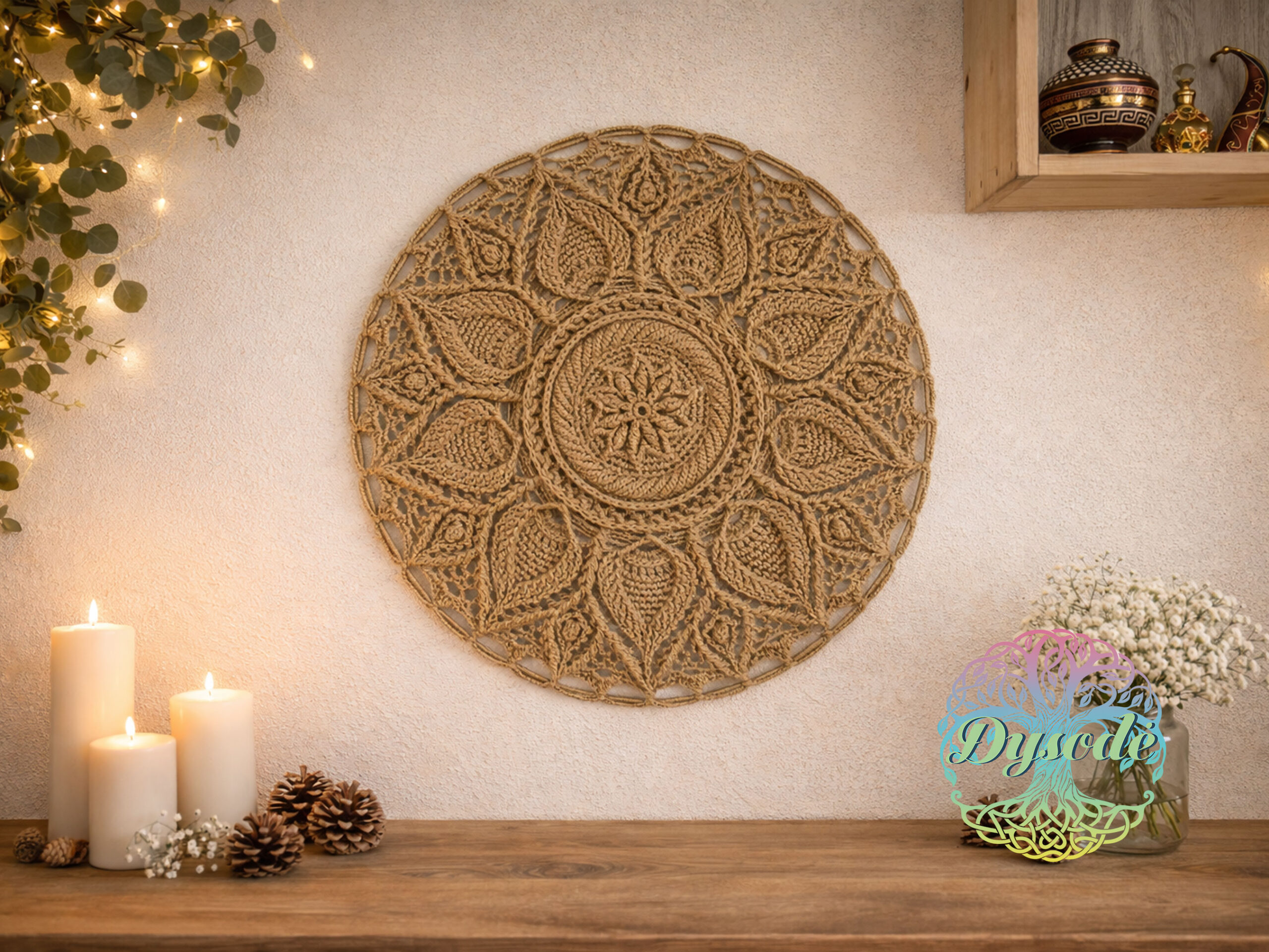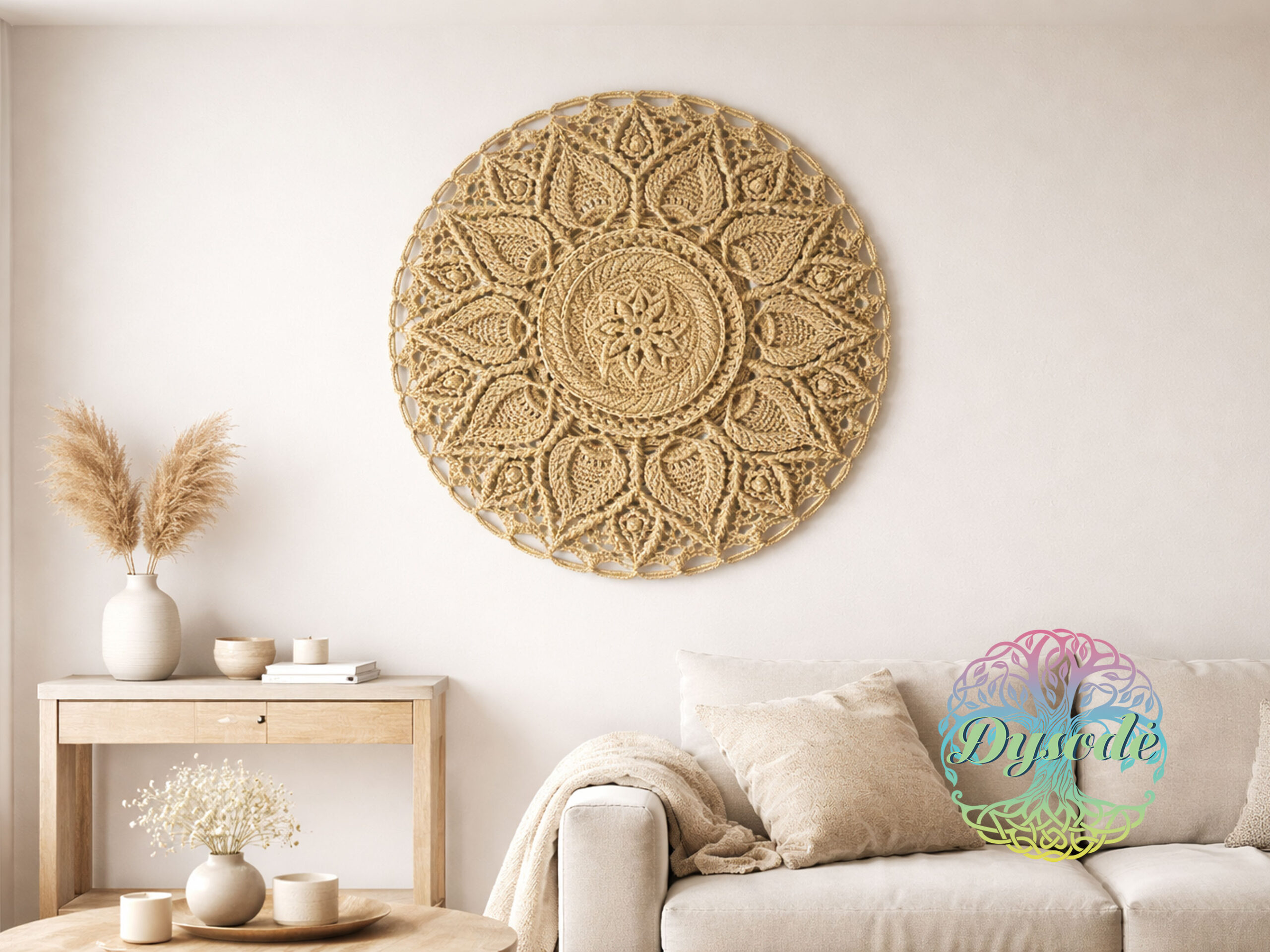 Kokybiška rankų darbo mandala iš virvės (100% poliesteris). Virvutė itin kokybiška, todėl spalva tikrai neišbluks. Lietuvoje pristatome NEMOKAMAI. Jei turite klausimų maloniai prašome kreiptis skiltyje – “Kontaktai”.