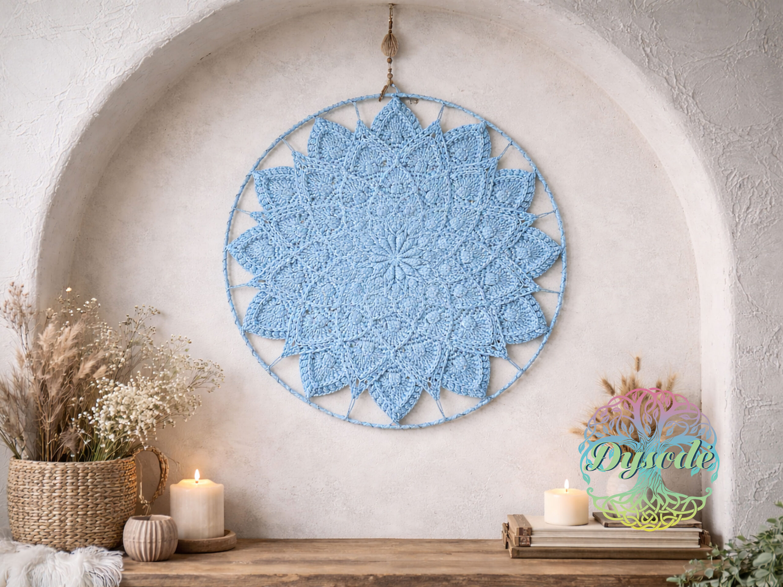 Kokybiška rankų darbo mandala iš virvės (100% poliesteris). Virvutė itin kokybiška, todėl spalva tikrai neišbluks. Lietuvoje pristatome NEMOKAMAI. Jei turite klausimų maloniai prašome kreiptis skiltyje – “Kontaktai”.