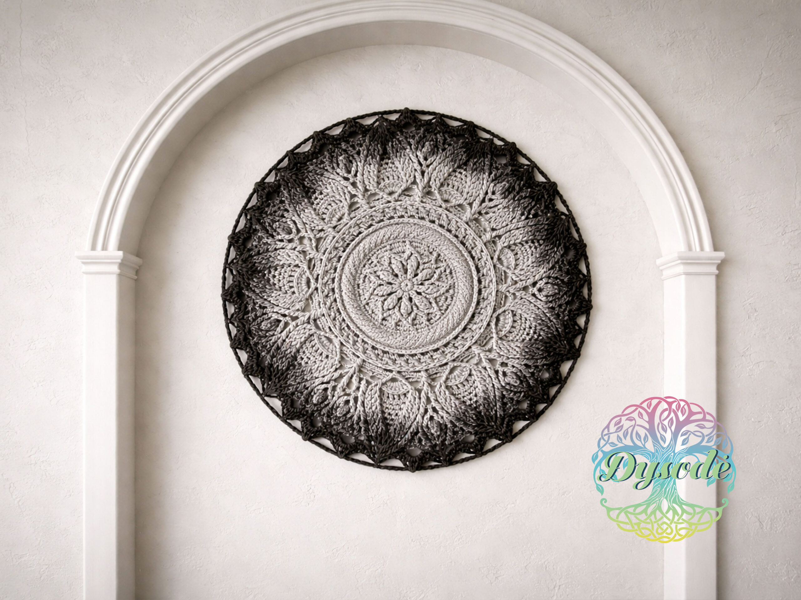 Pilkos spalvos tamsėjanti ombre mandala „Ulita“