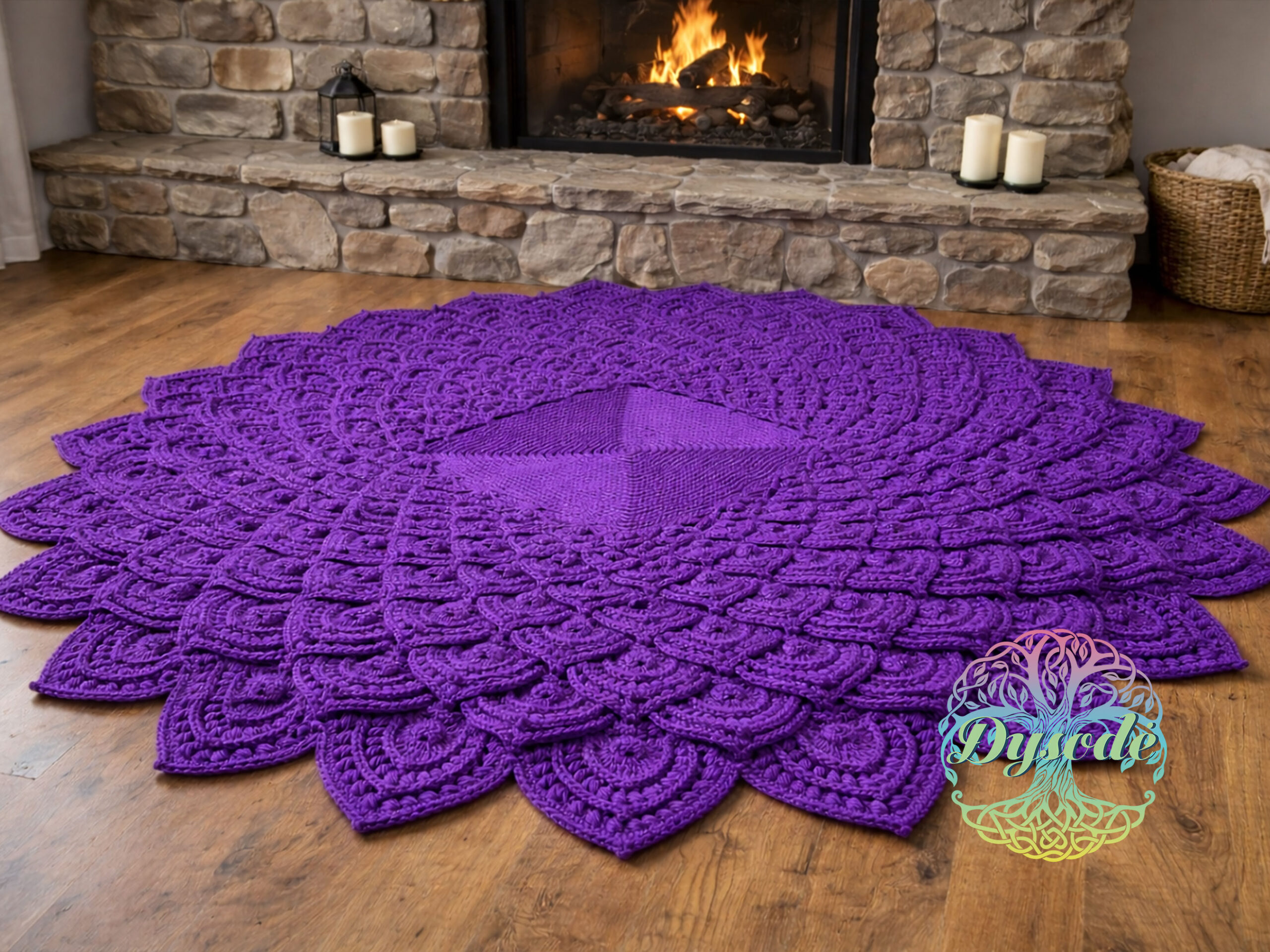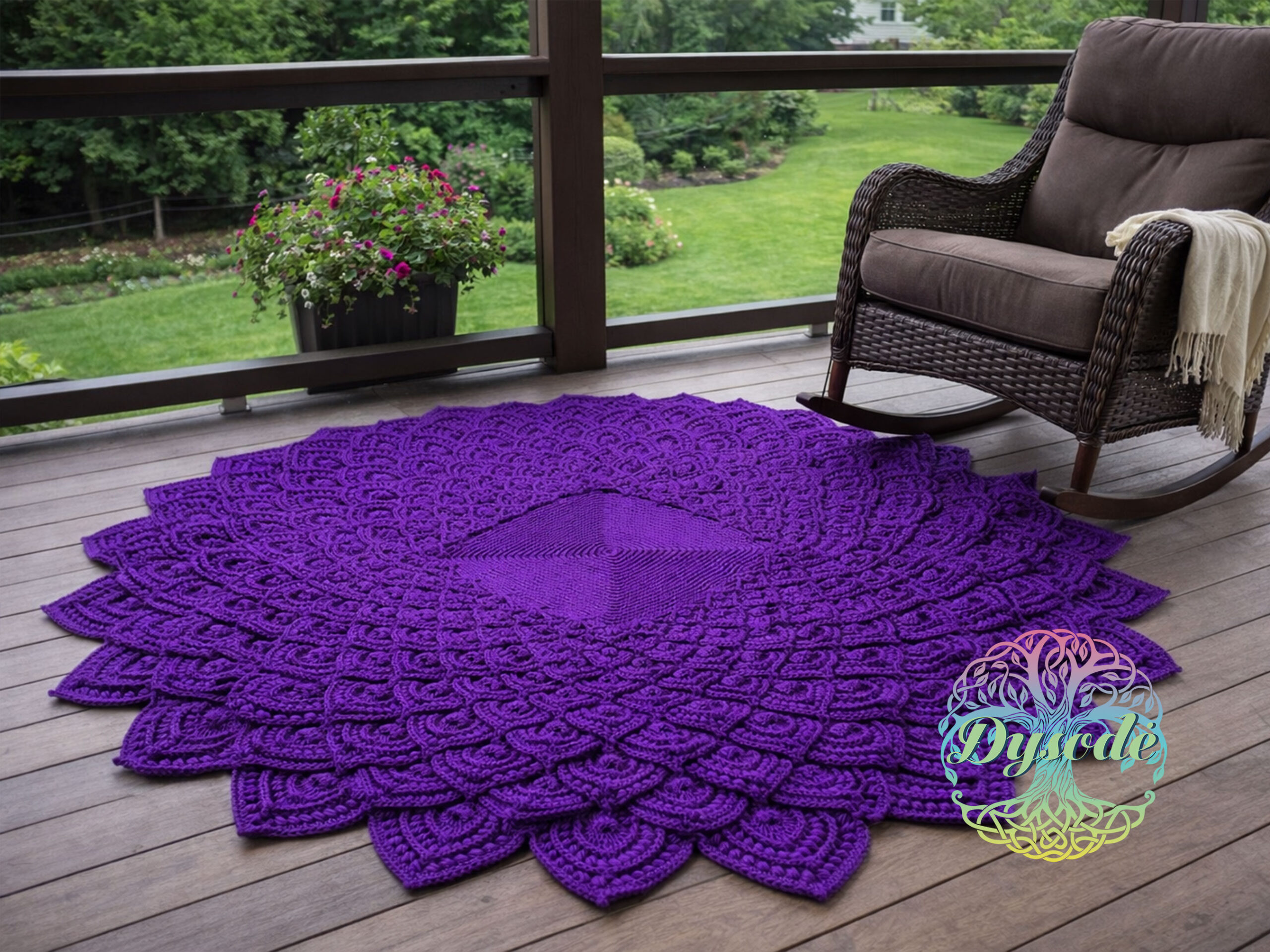 Purpurinės violetinės spalvos kilimas tuščiaviduris „Lotosas“ kvadratiniu viduriu