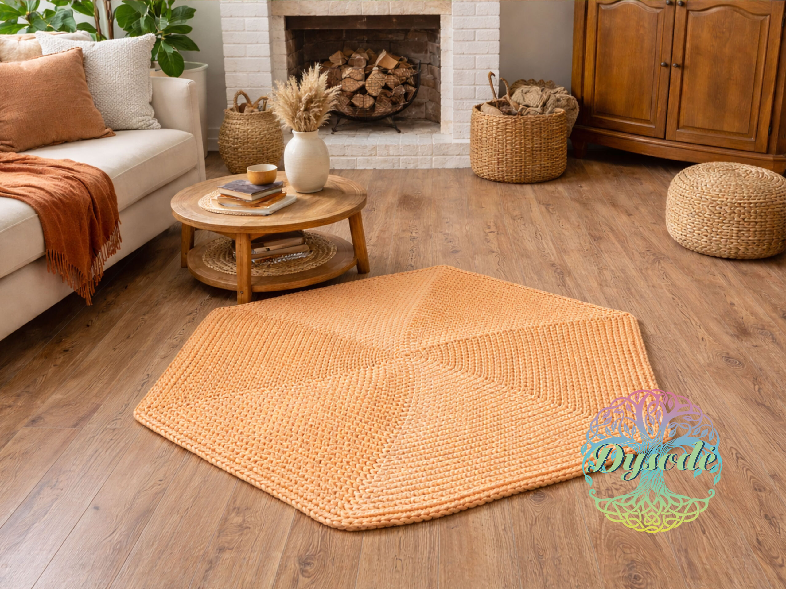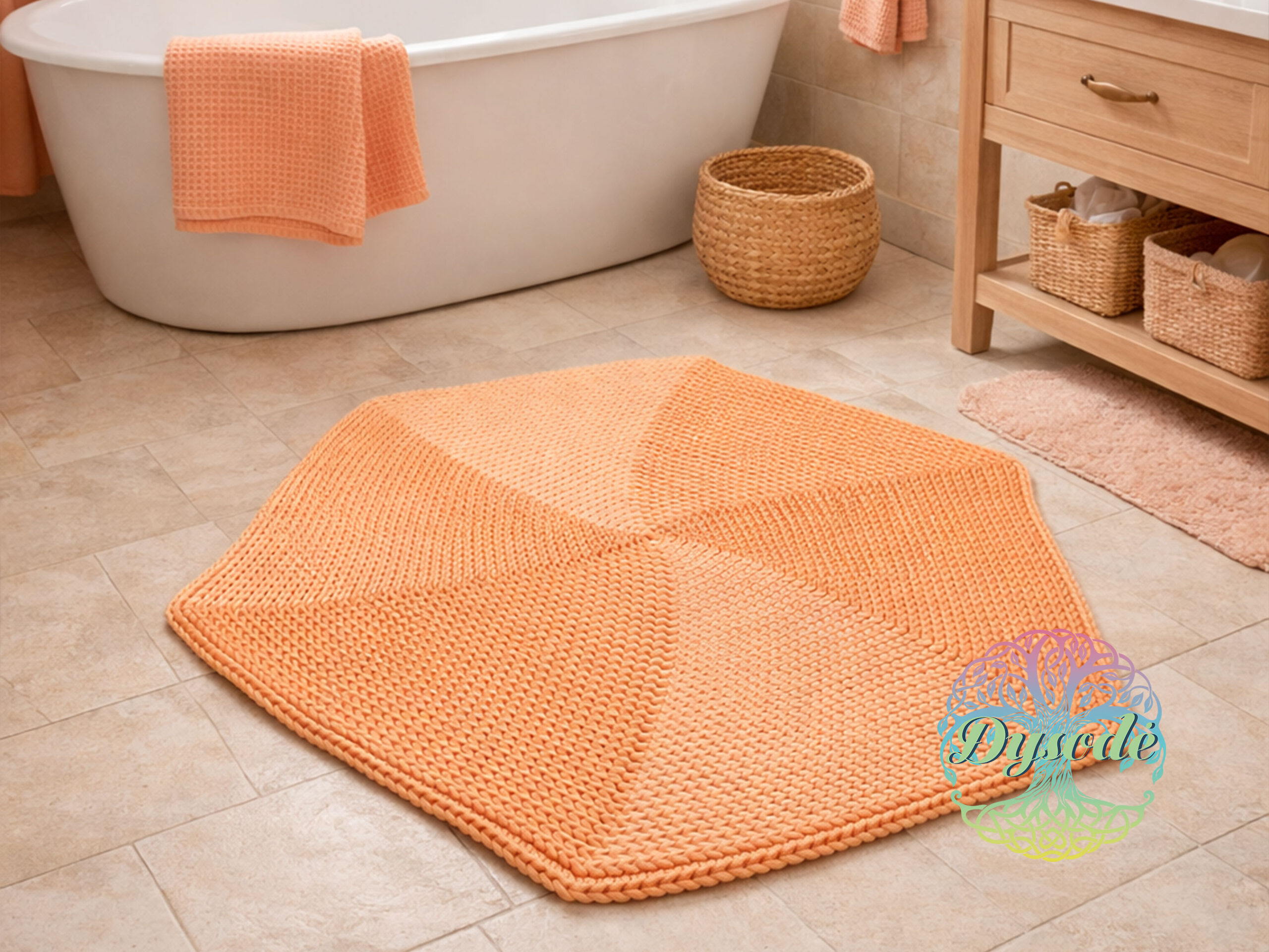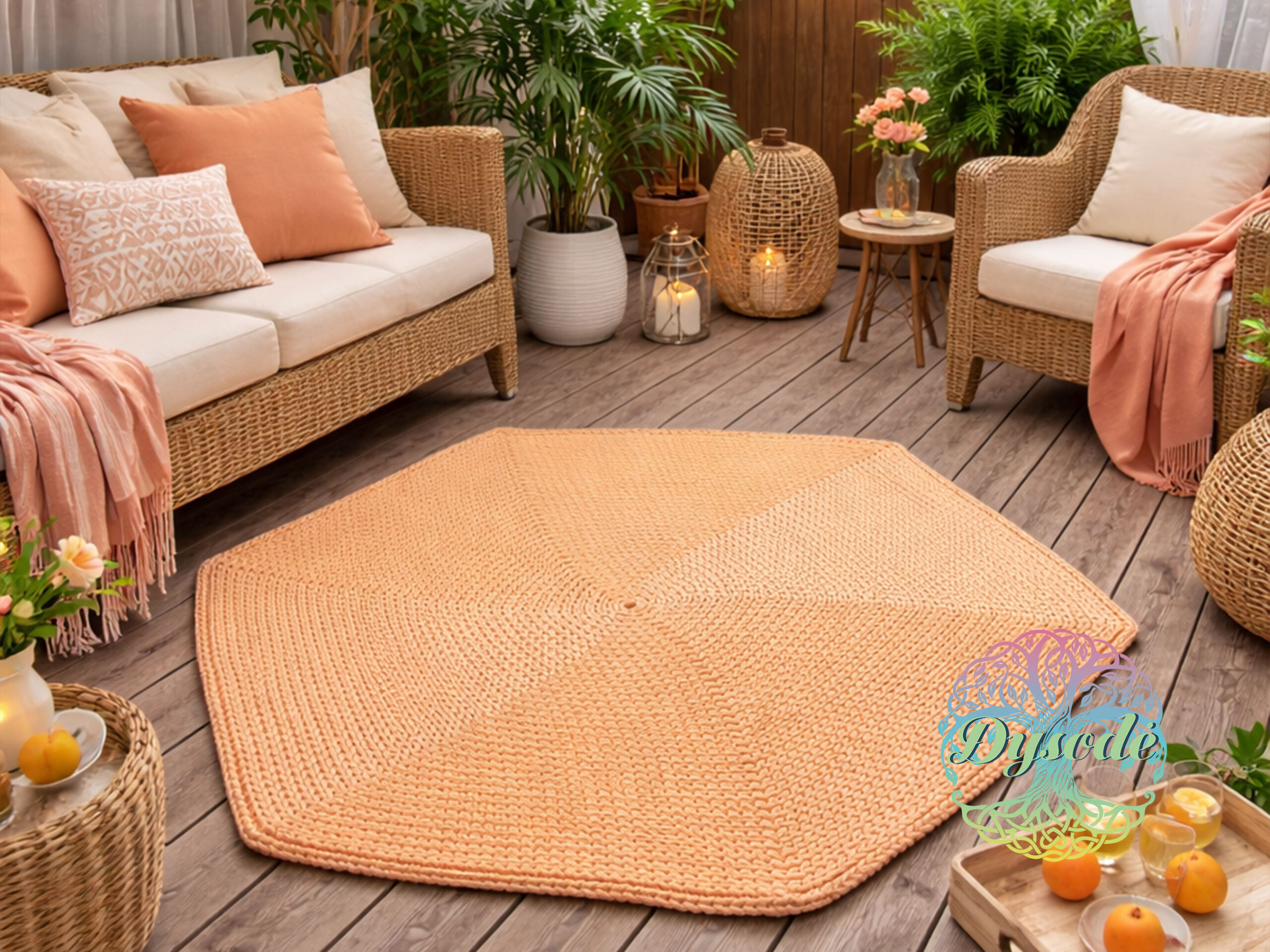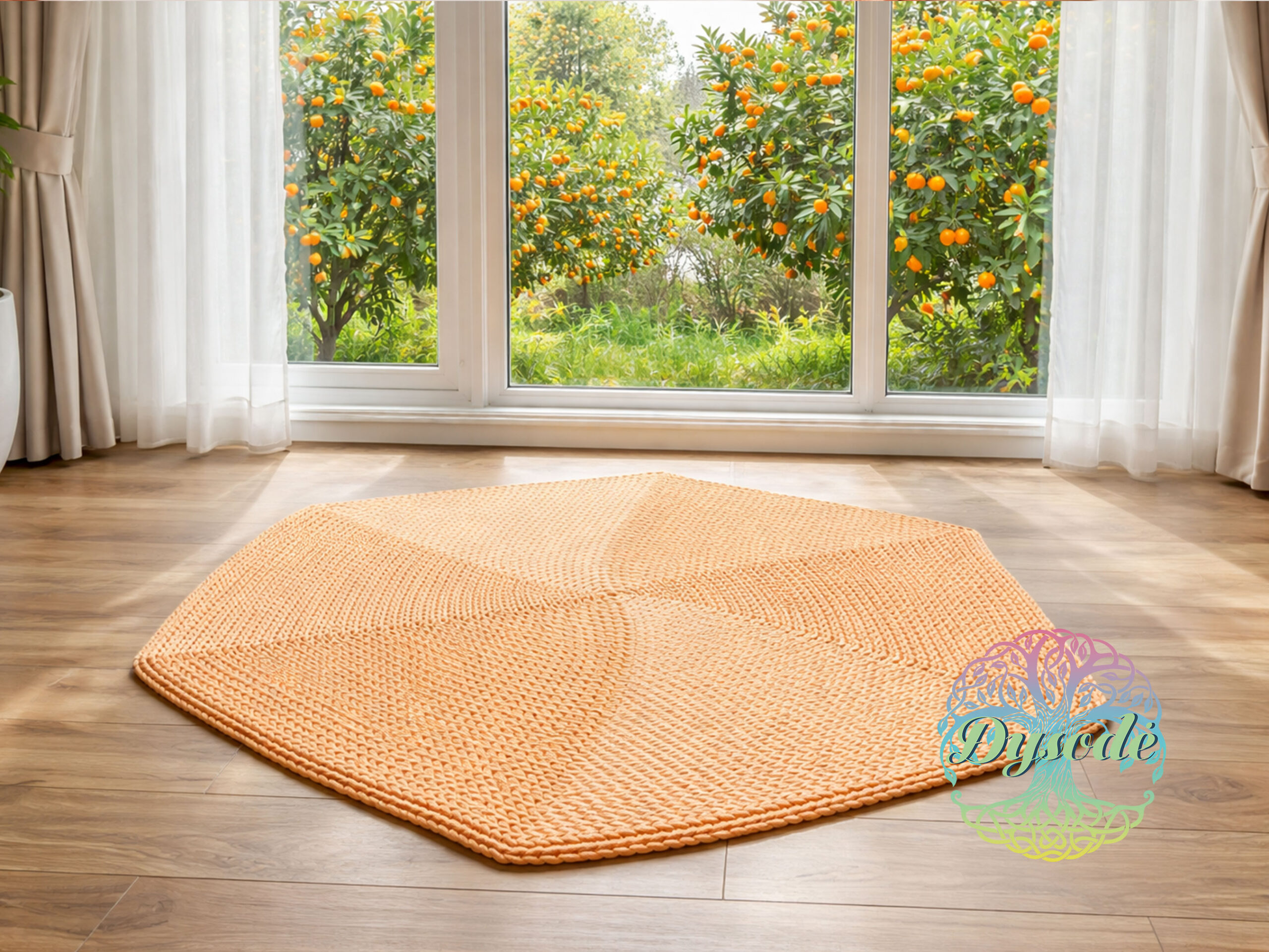 Švelnios persiko spalvos kilimas „Šešiakampis“