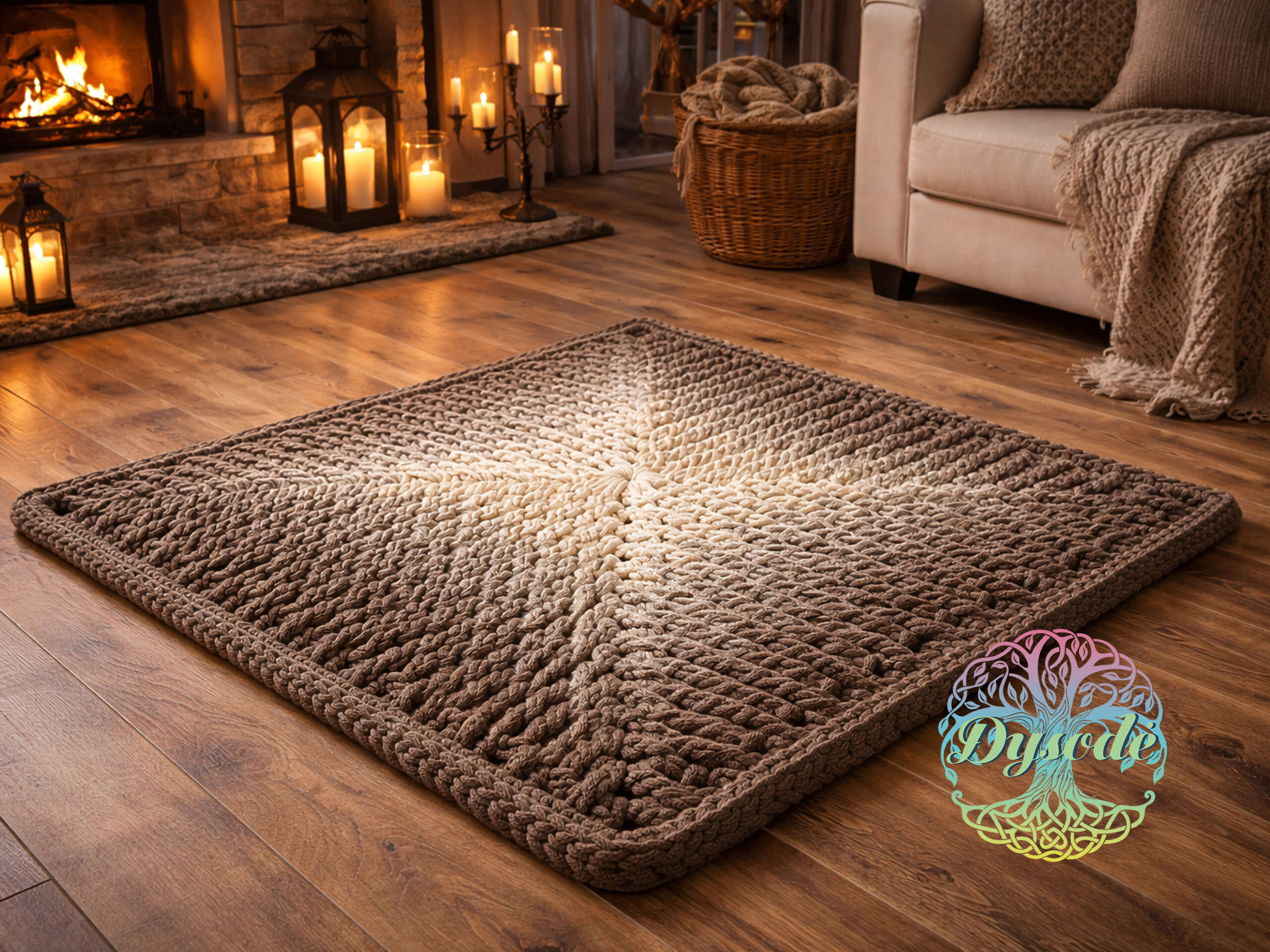 Vanilinės – riešutinės spalvos ombre kilimas „Močiutės kvadratas“
